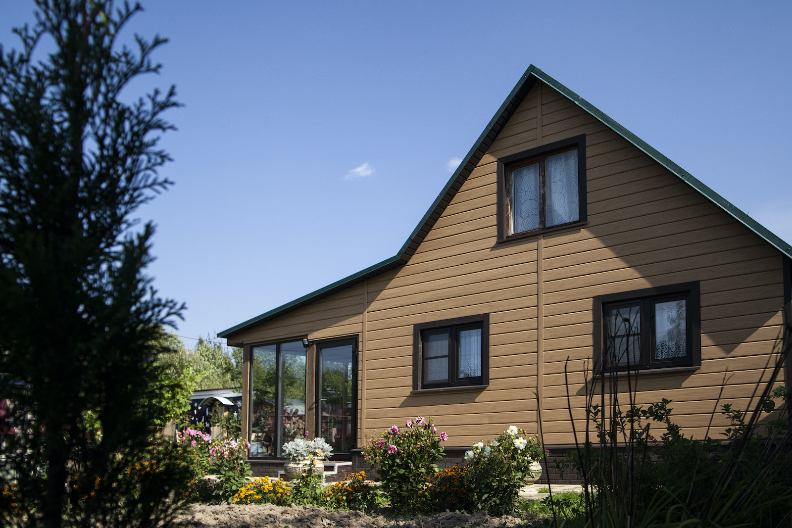 Заказывал виниловый сайдинг Docke. Хороший материал, цвет насыщенный, а монтаж прошел быстро и без сложностей.