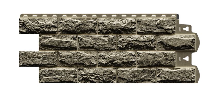 Фасадные панели оттенка «Шатель» неотличимы на вид от натуральной скальной породы. Высокотехнологичная окраска фактурного прочного материала позволяет достигнуть максимальной реалистичности.