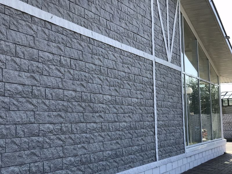 Углы в цвете «перламутровый» — идеальное дополнение для фасадных панелей с эффектом крупноформатной каменной кладки. Спокойный многогранный цвет и швы в тон материала делают стык панели и угла практически незаметным.