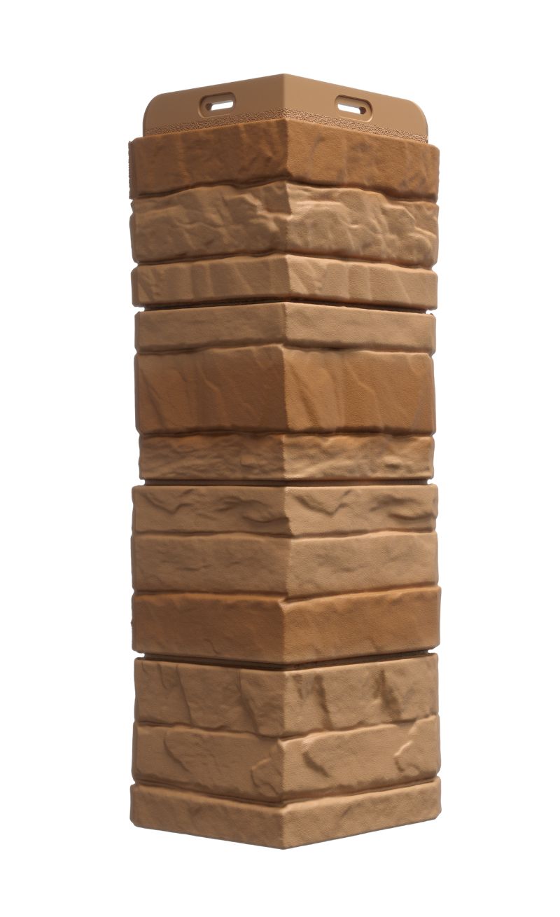 Углы с фактурой слоистого песчаника аккуратно закрывают торцы панелей и помогают создать эффект цельной облицовки. Для полной имитации каменной кладки используйте фасадные панели STEIN.